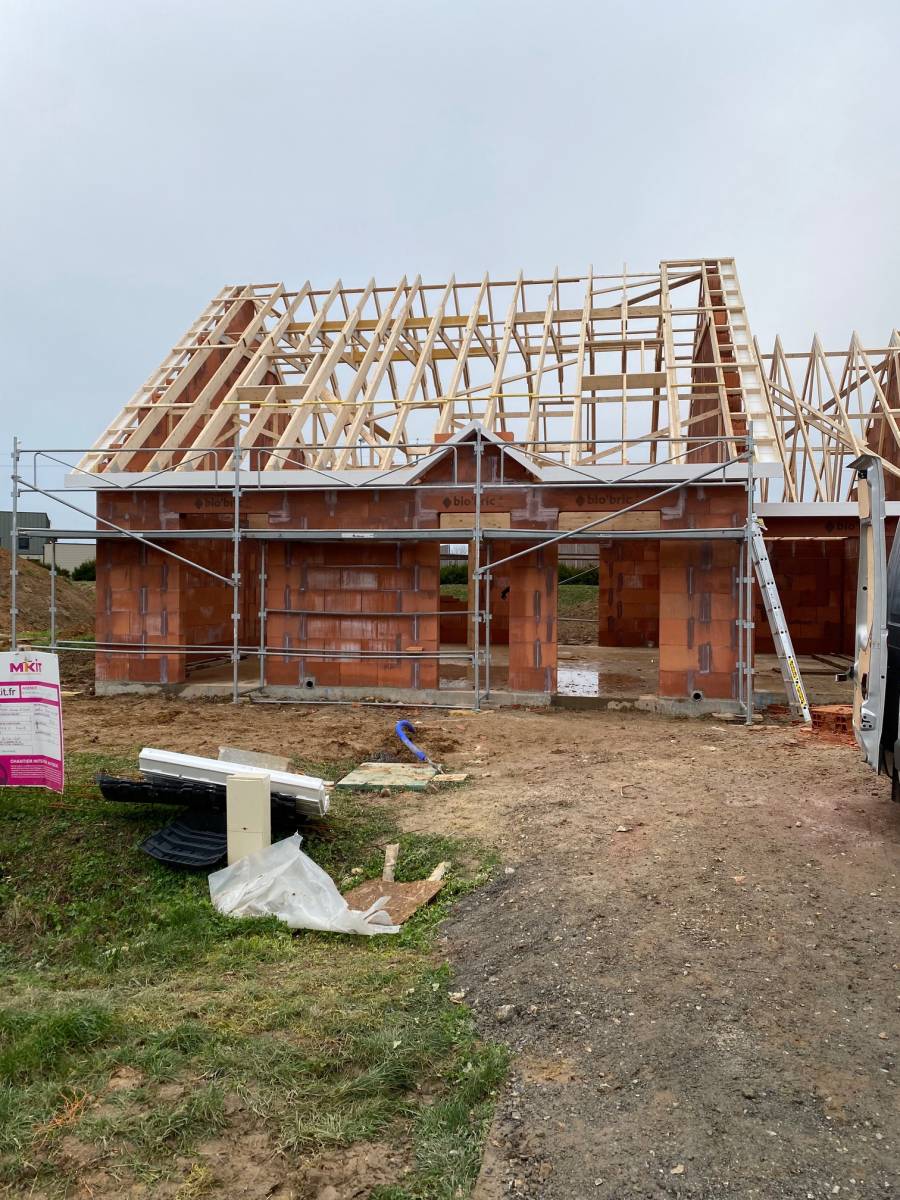 Charpente de type fermette à combles habitables avec chevêtre pour fenêtre de toit