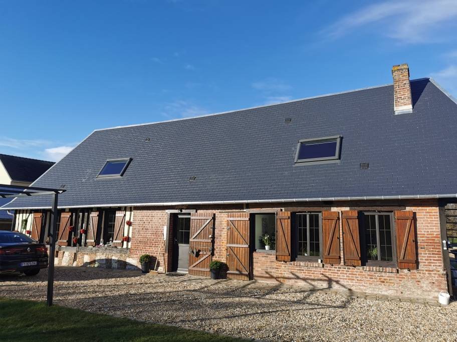 Rénovation complète pour cette ancienne maison .Couverte initialement en ardoise 36*36 ,en mauvaise état ,le changement de toiture était devenu inévitable .