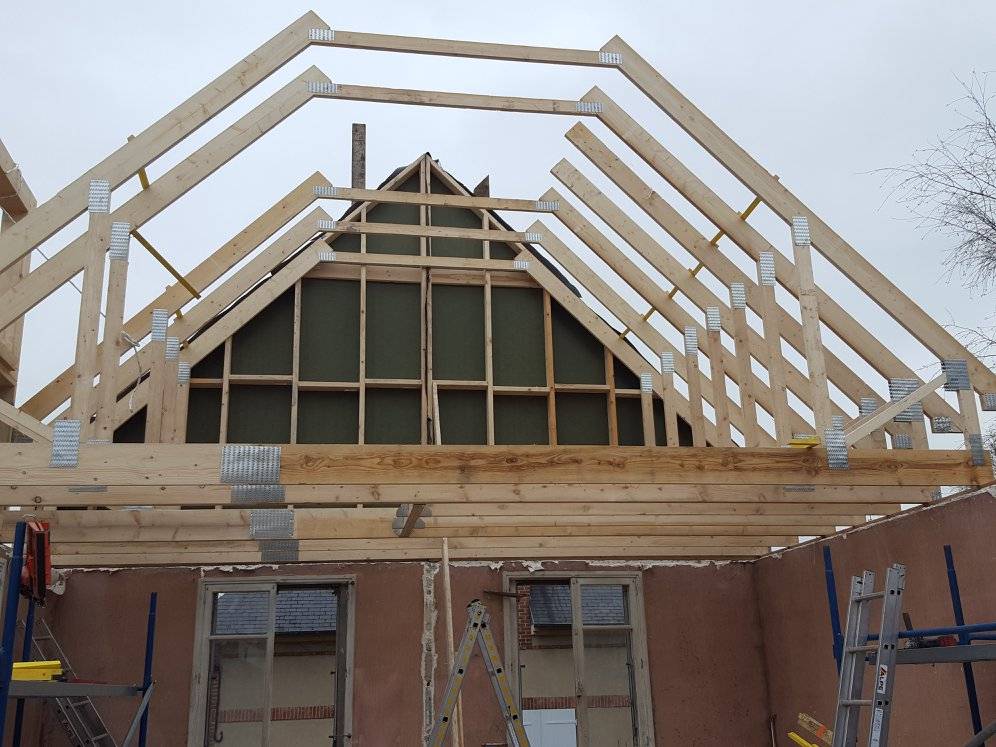 Pose de charpente de type fermette à combles habitables pour création d'un étage.